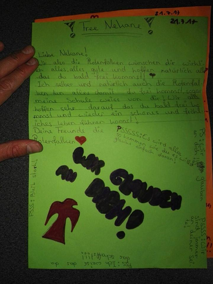 - Auch die Roten Falken schreien laut: FREE NEKANE!!! Folteropfer niemals ausliefern!